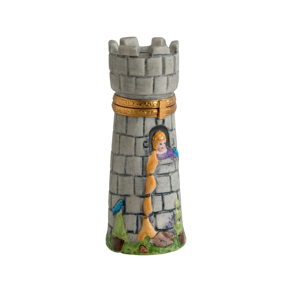 Step into a realm of enchantment with the Rapunzel First Curl Limoges Porcelain Box, a stunning piece that captures the magical essence of childhood memories. This exquisite handcrafted box, created by skilled artisans in the renowned Limoges region of France, serves as a perfect decorative trinket, beautifully showcasing a moment of innocence while providing an artistic benefit for any nursery or child's room.