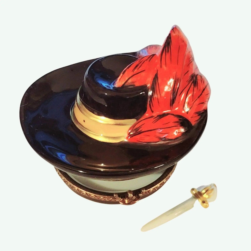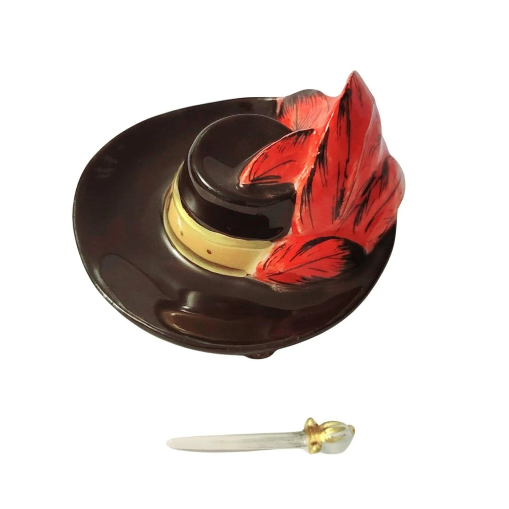 Introducing the exquisite Three Musketeers Swordsman Hat Box, a captivating piece of French porcelain that beautifully blends the enchanting allure of swashbuckling tales with the sophistication of fine art. This stunning trinket box makes an extraordinary gift for collectors and lovers of timeless elegance.