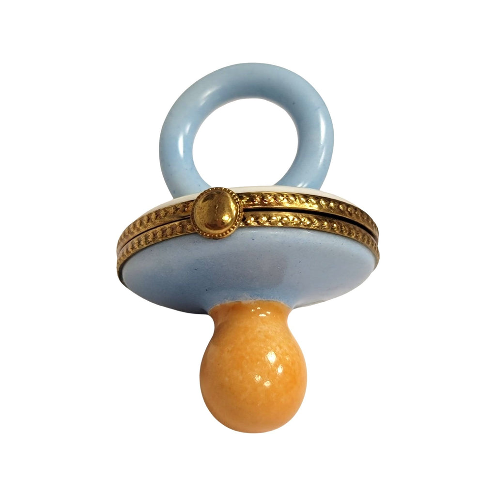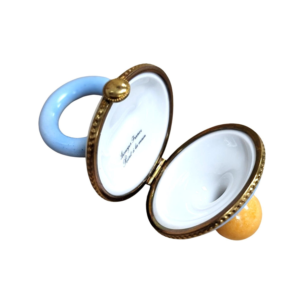Charming Blue Pacifier with Rabbits - A Delightful Limoges Porcelain Box