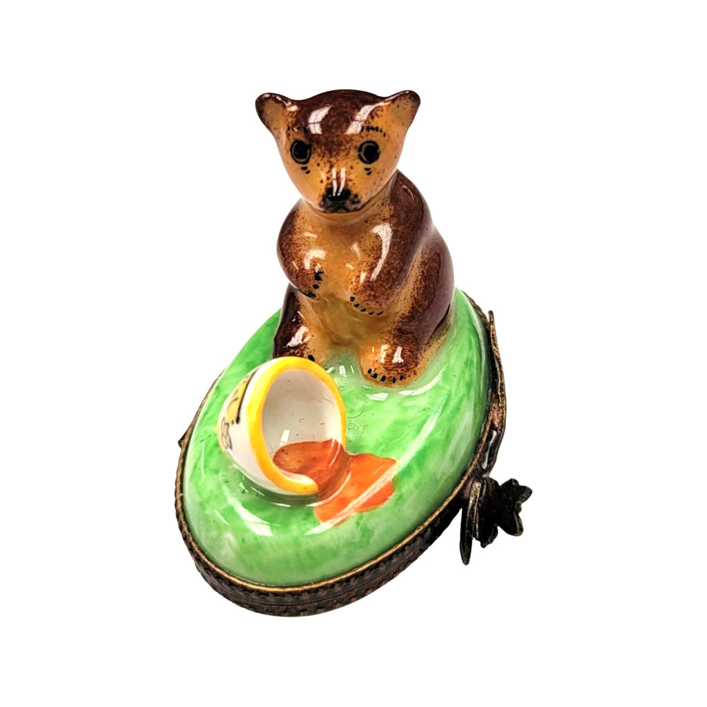 Charming Brown Bear With Honey Jar - A Delightful Limoges Porcelain Box