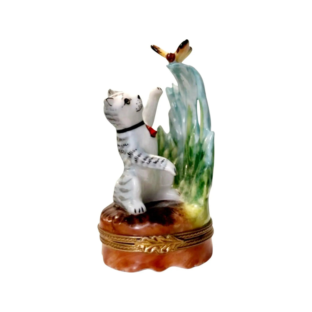 Charming Cat and Butterfly Limoges Box - A Delightful Gift for Animal Lovers