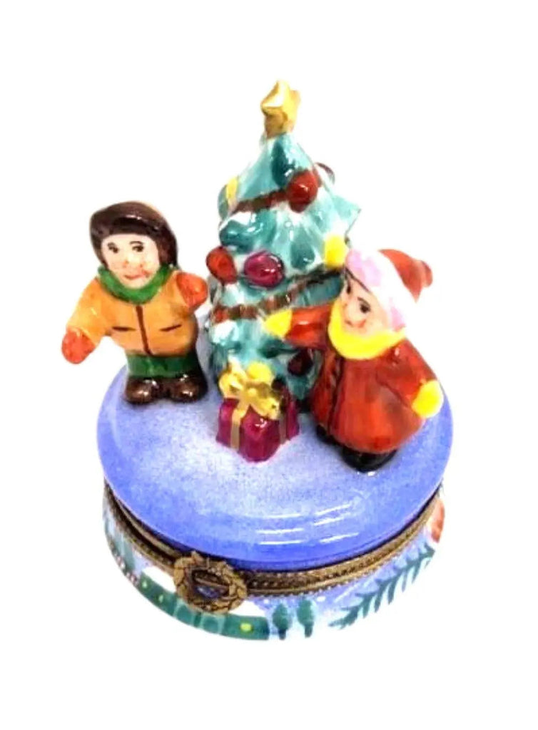 Children's Christmas Morning Joy - A Festive Limoges Porcelain Box
