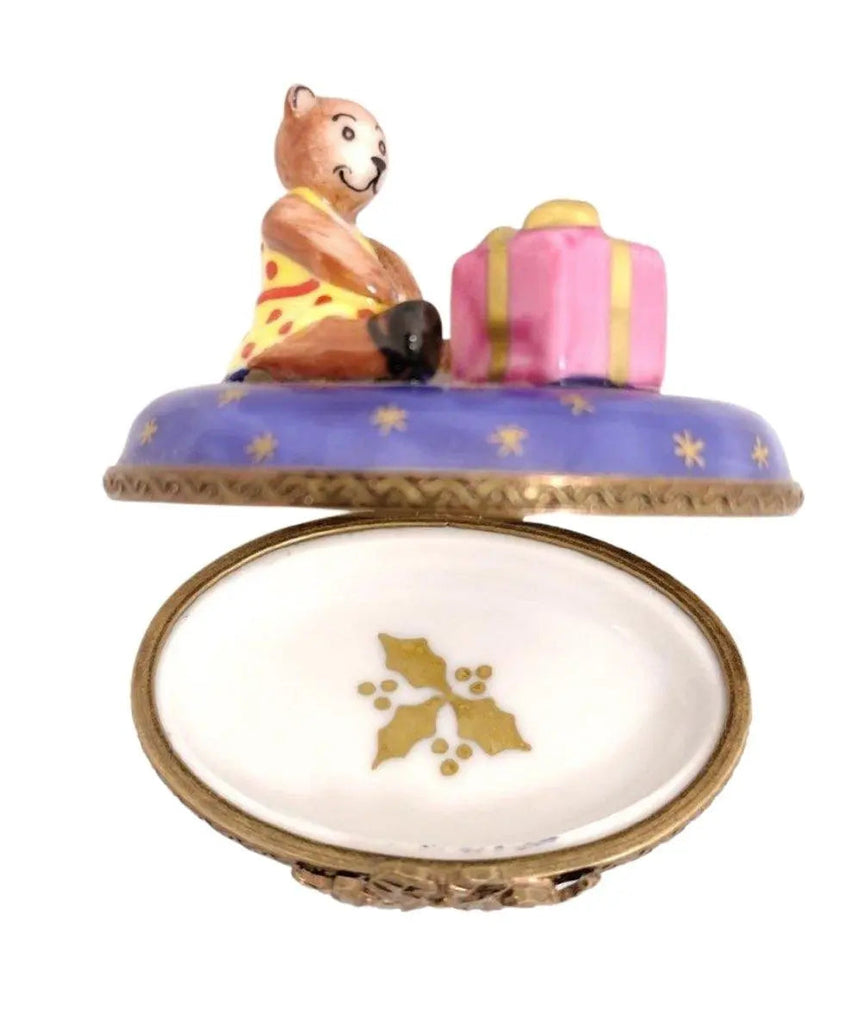 Teddy Bear Christmas Gift Figurine Porcelain Limoges teddy xmas French Trinket Box
