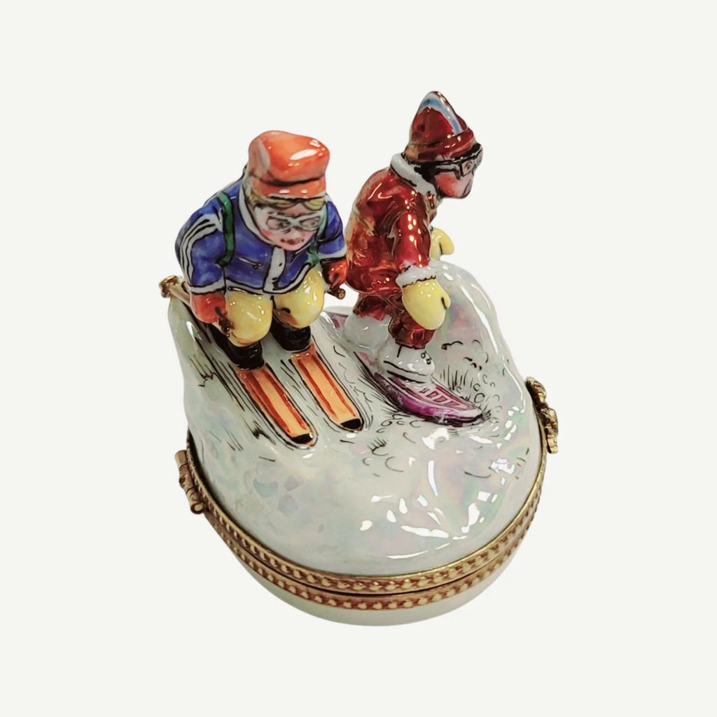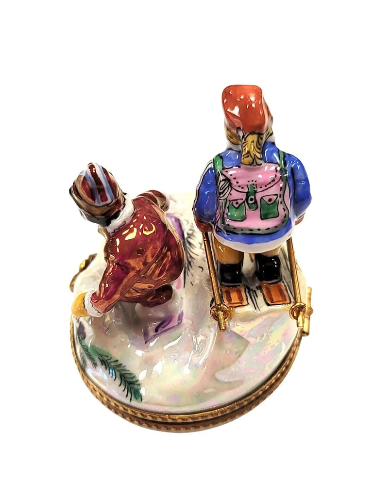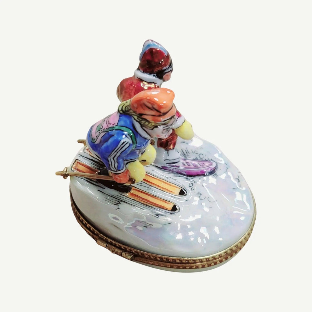 Skiing Adventure Limoges Box Porcelain Limoges xmas sports French Trinket Box