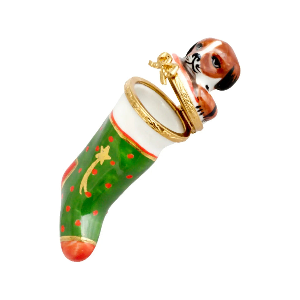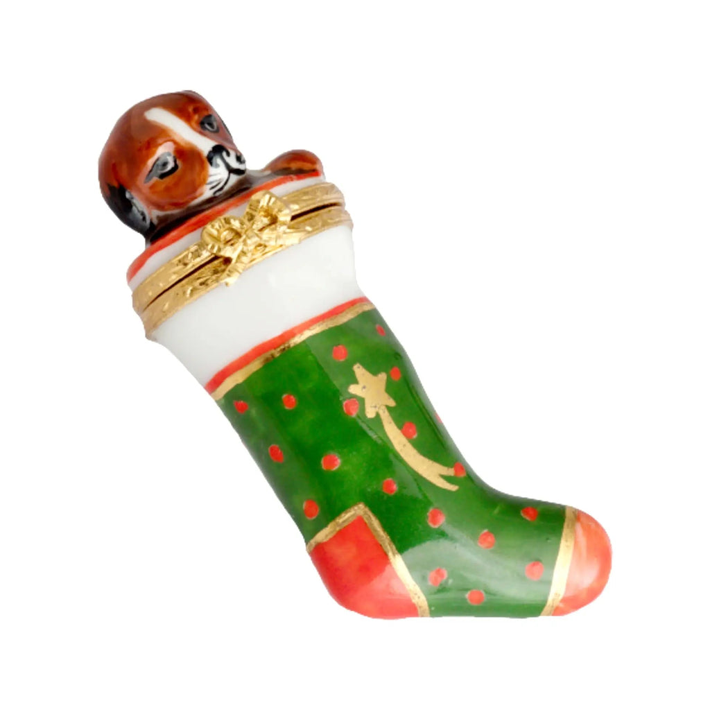 Enchant Your Holidays with the Christmas Stocking w Puppy Limoges Box