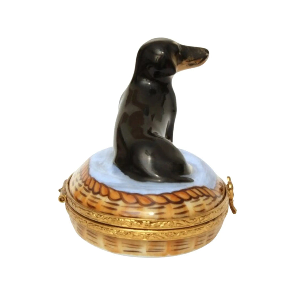 Dachshund In Basket: Black Dog Limoges Box