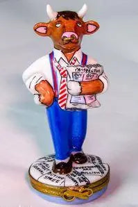 Stock Market Bull Cow Porcelain Limoges wild professional limoges boxes French Trinket Box