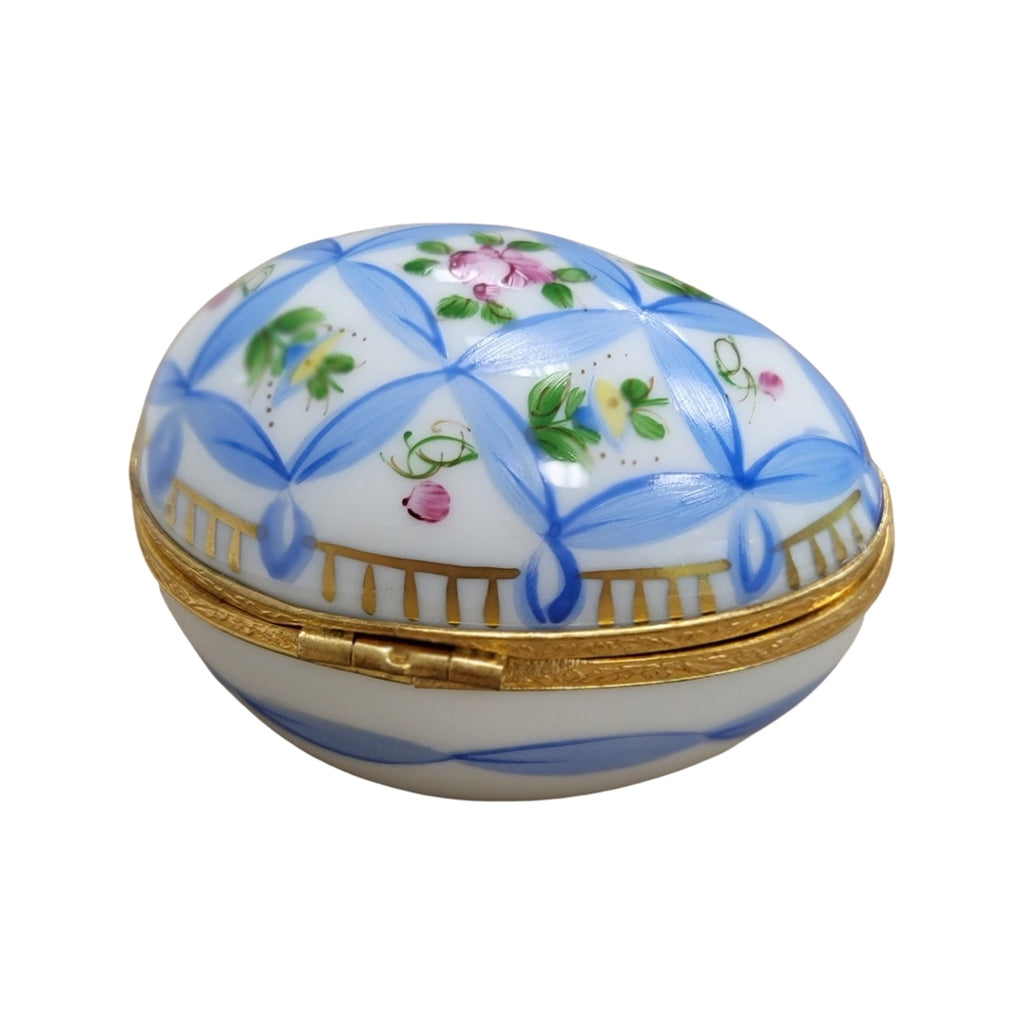 Exquisite Blue Ribbon Limoges Egg - A Timeless Treasure