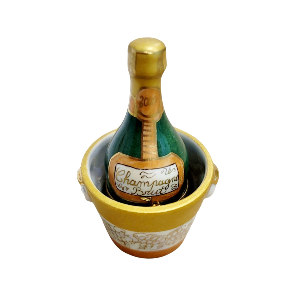 Introducing the stunning Champagne in Bucket, a luxurious Limoges Porcelain Box that serves as the perfect centerpiece for those who appreciate the art of fine living. This exquisite piece not only holds your favorite bubbly but also injects a touch of sophistication into your home decor, making it an ideal gift for wine lovers and celebration enthusiasts.