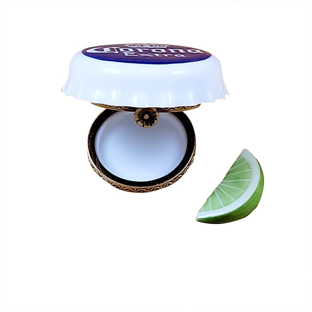 Corona Beer Cap with Lime Slice Porcelain Limoges Wine spirits French Trinket Box