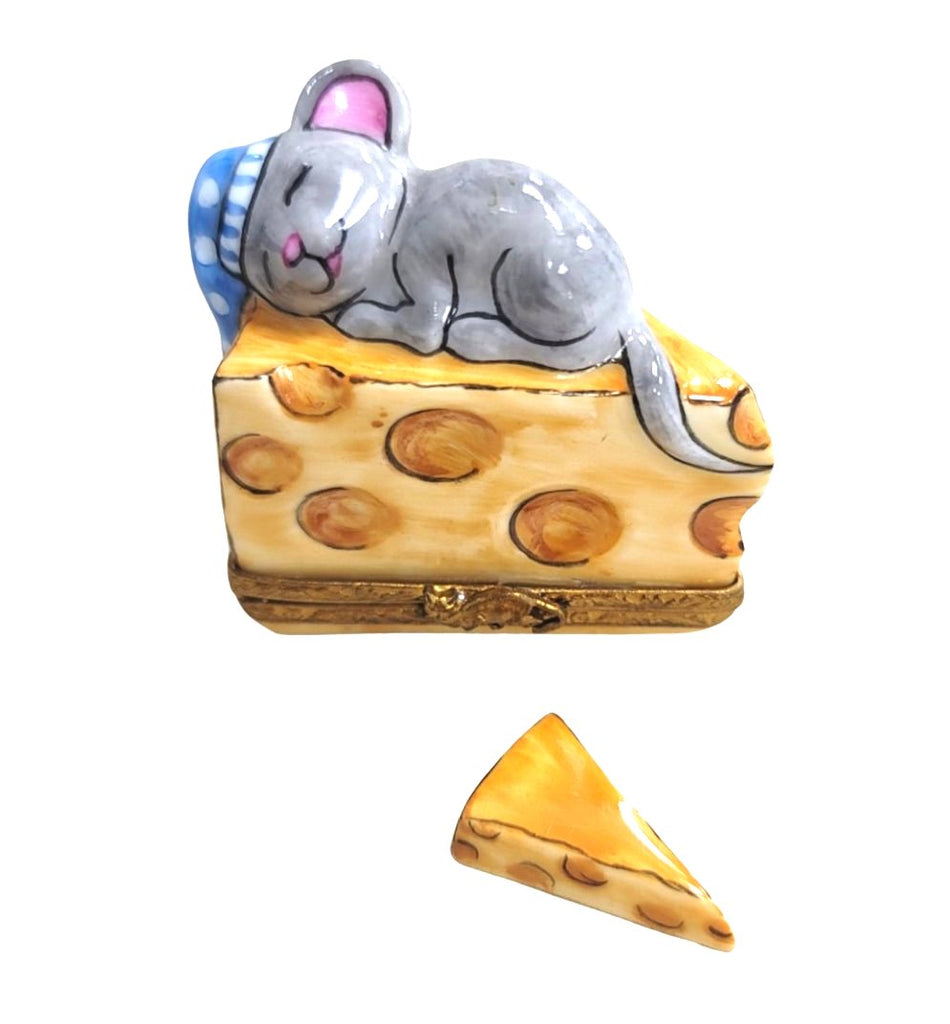 Discover the delightful Sleeping Mouse on Cheese, a charming Limoges porcelain box that brings a whimsical touch to any cheese lover's collection. This exquisite piece not only serves as a stunning decorative item but also enhances your cheese tasting experience, making it the perfect gift for food enthusiasts.