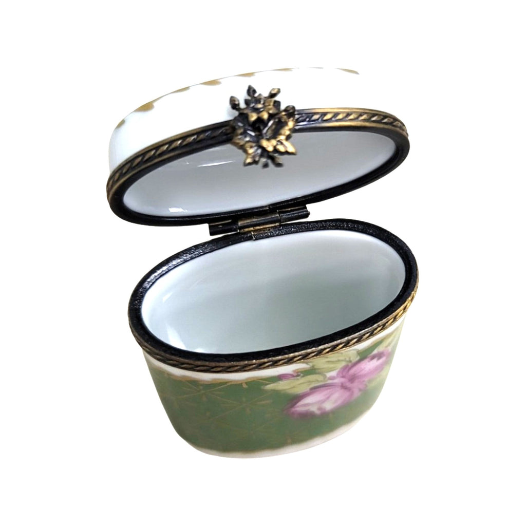 Elegant Green Floral Limoges Box for Home Decor