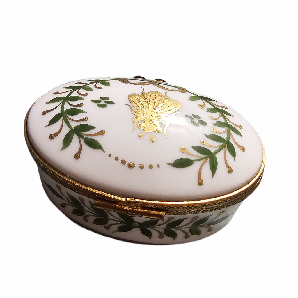 Elegant Green Leaves Gold Bee Limoges Box