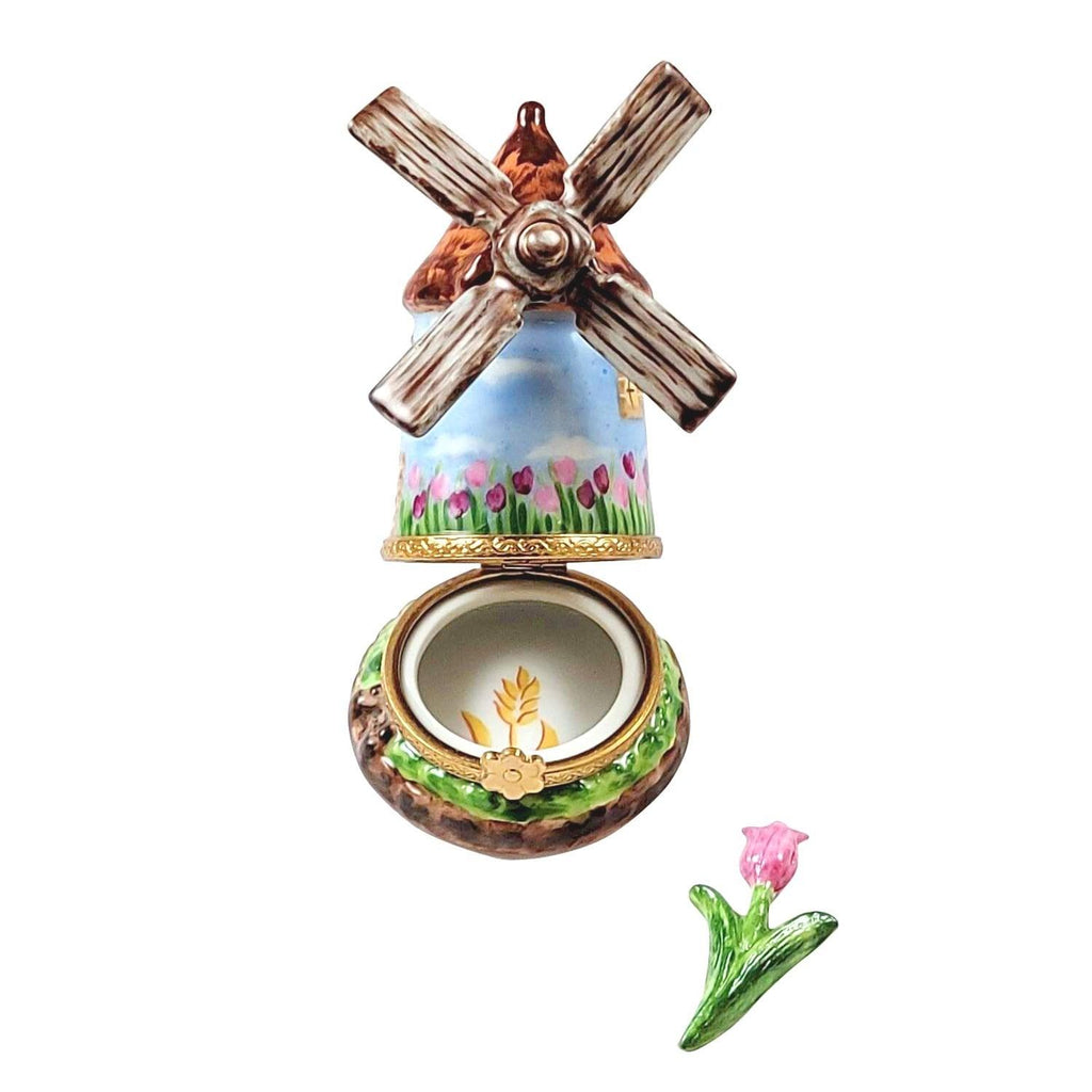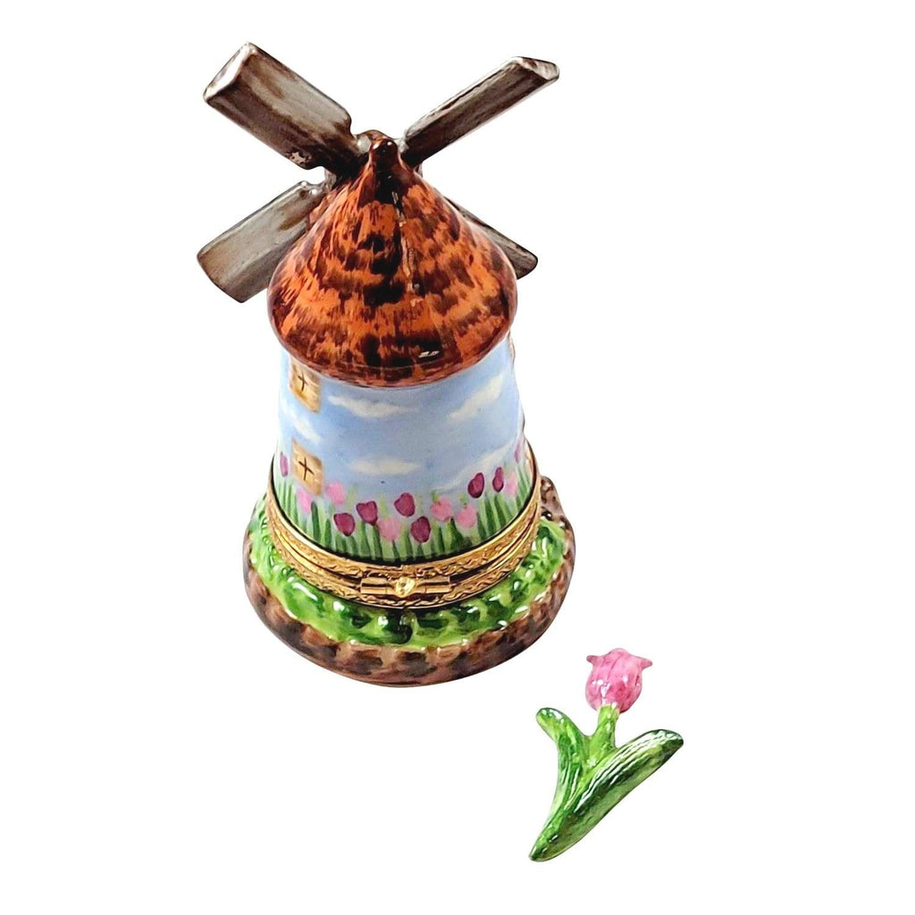 Charming Limoges Porcelain Windmill with Tulip for Home Decor
