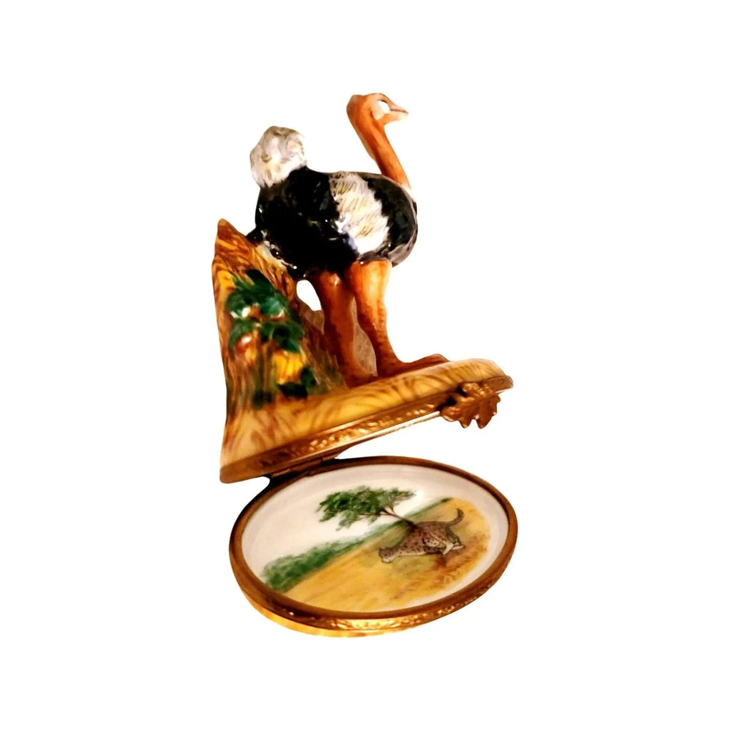Introducing the exquisite Ostrich Bird Limoges Trinket Box, a stunning piece of authentic Limoges porcelain meticulously handcrafted in the heart of France. This remarkable trinket beautifully captures the essence of one of the largest birds in the world, featuring a striking design that showcases its long neck and elegant posture, making it the perfect gift for bird lovers and collectors alike.