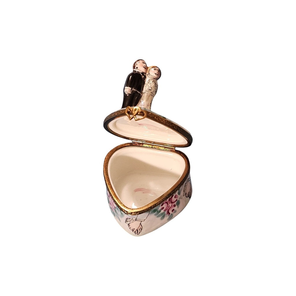 Celebrate the union of love with our exquisite Bride and Groom Heart Box, a stunning piece of Limoges porcelain artistry that adds a touch of elegance to any wedding or anniversary gift. This charming box not only embodies the spirit of togetherness but also serves as a unique keepsake for couples to cherish forever.