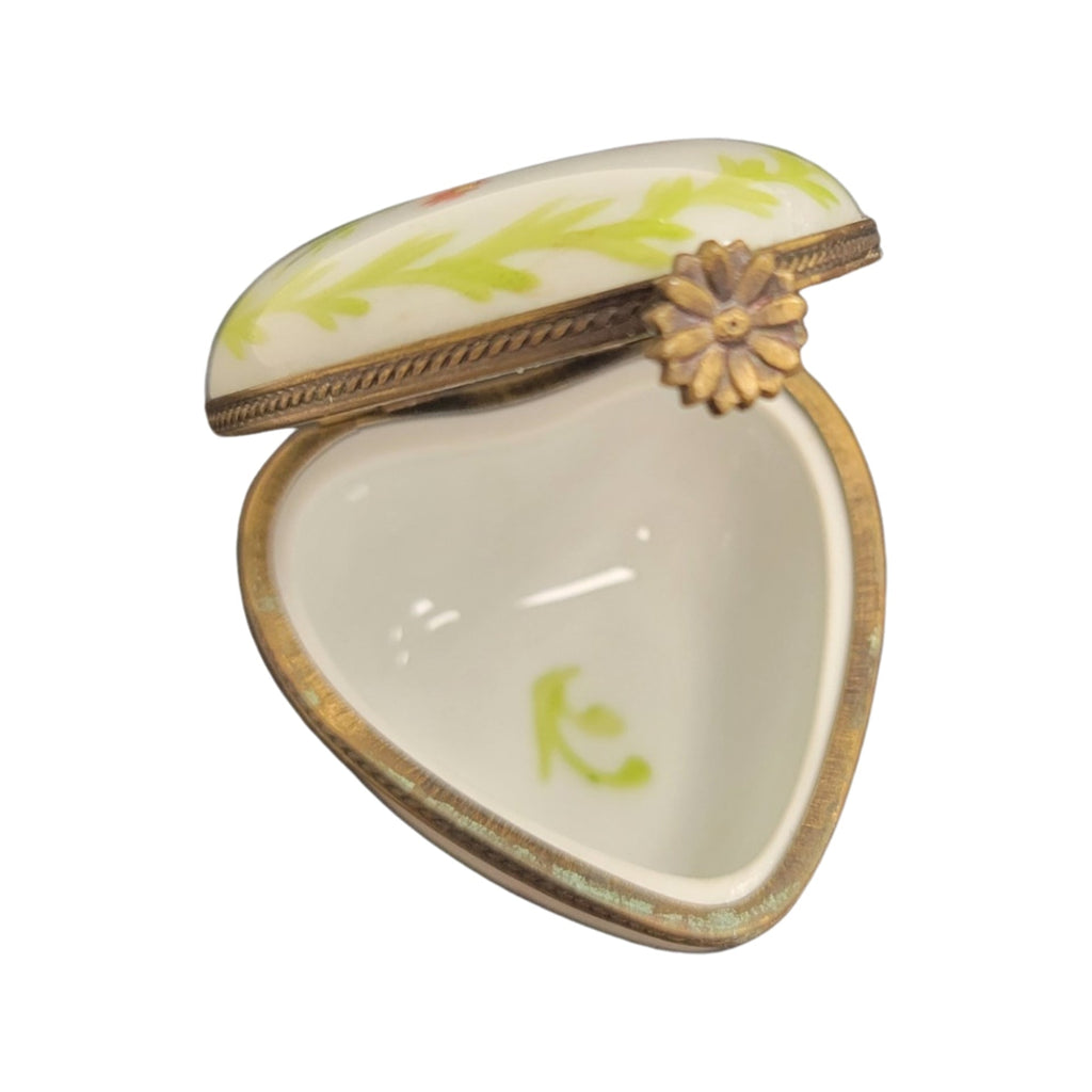 Green Heart Flower Box Porcelain Limoges hearts LIMOGES BOXES French Trinket Box