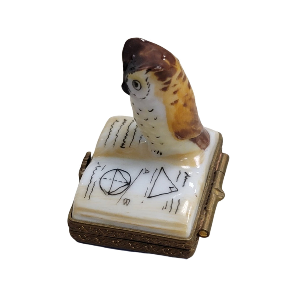 Owl Perched on Book Elegance - A Touch of Wisdom in Limoges Porcelain