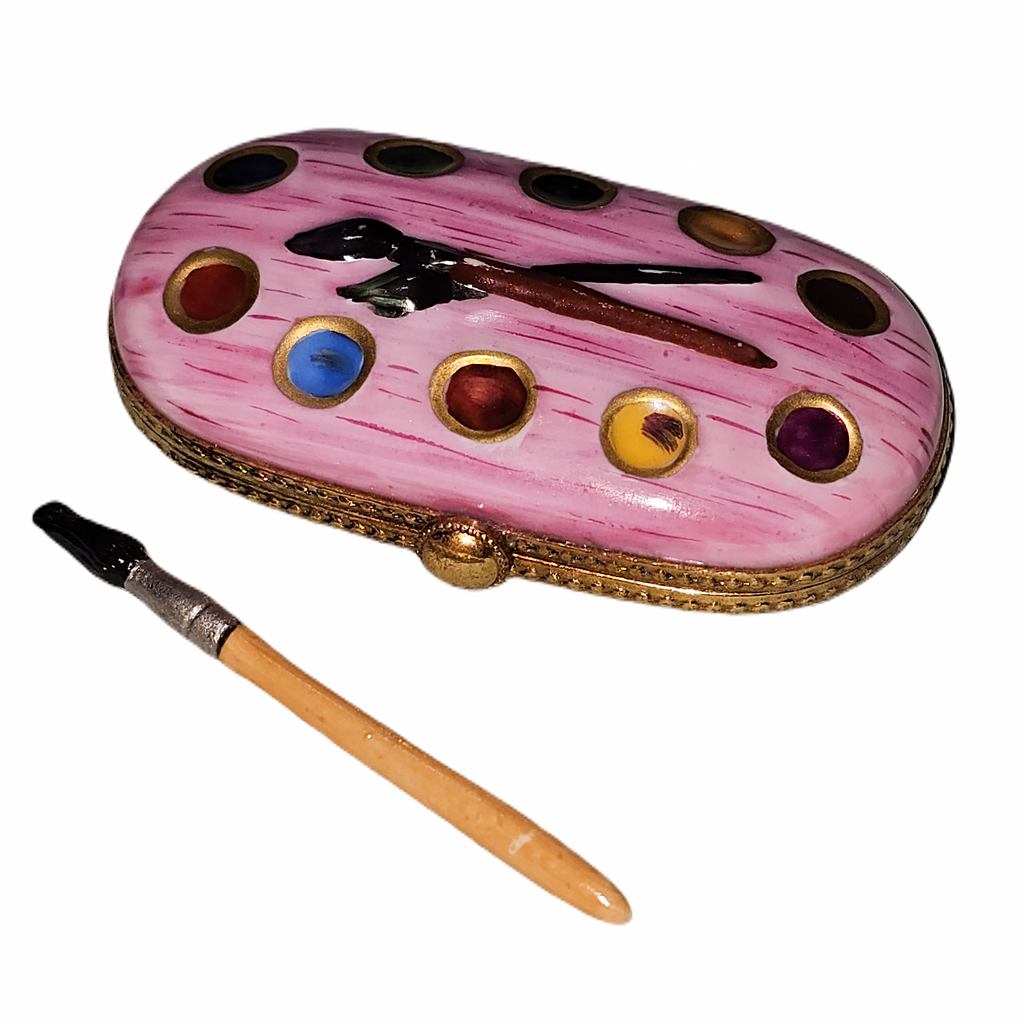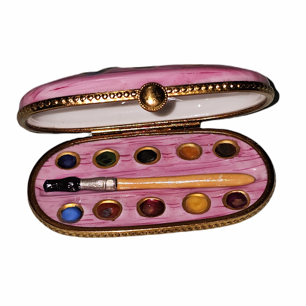 Elegant Pink Art Palette Limoges Box - A Touch of Artistic Charm