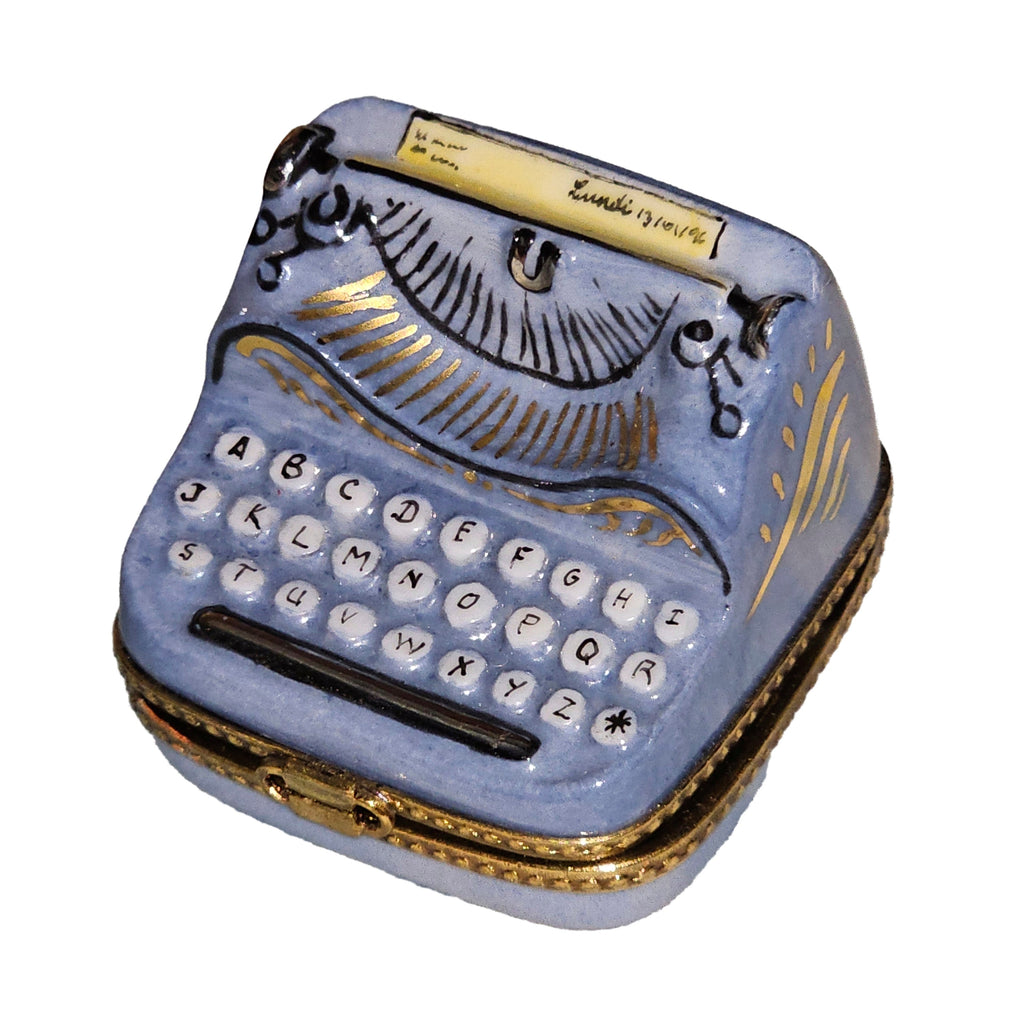 Delight in the exquisite artistry of the Periwinkle Typewriter Treasure Box, a stunning Limoges porcelain piece that beautifully captures the nostalgia of classic writing. This enchanting box serves not only as a decorative item but also as a unique and thoughtful gift for writers, artists, or anyone who cherishes the beauty of the written word.