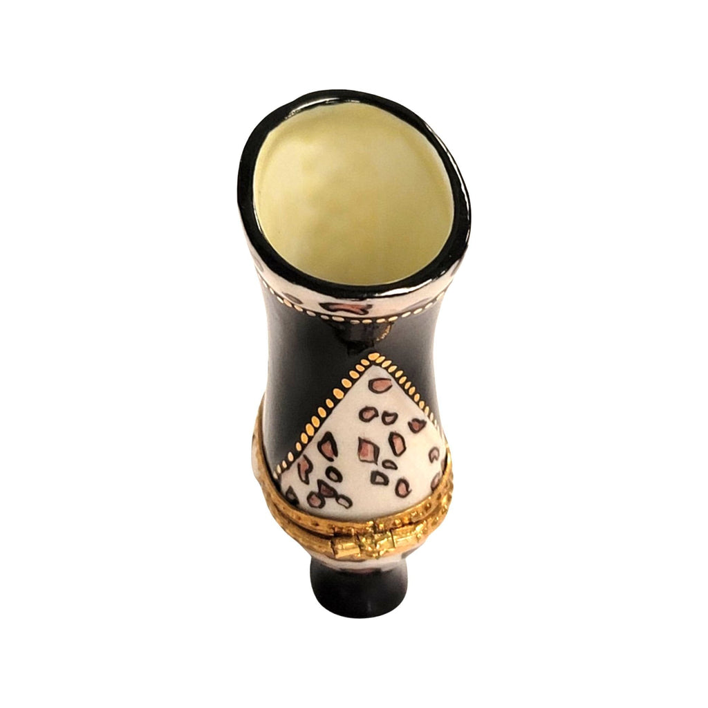 Discover the exquisite charm of our Black Lady's Boot Shoe Fashion Limoges Box Porcelain Figurine, a stunning piece that effortlessly embodies elegance and sophistication. This meticulously handcrafted figurine not only serves as a decorative item but also transforms any space into a luxurious display of artistry, making it the perfect gift for fashion enthusiasts and collectors alike.