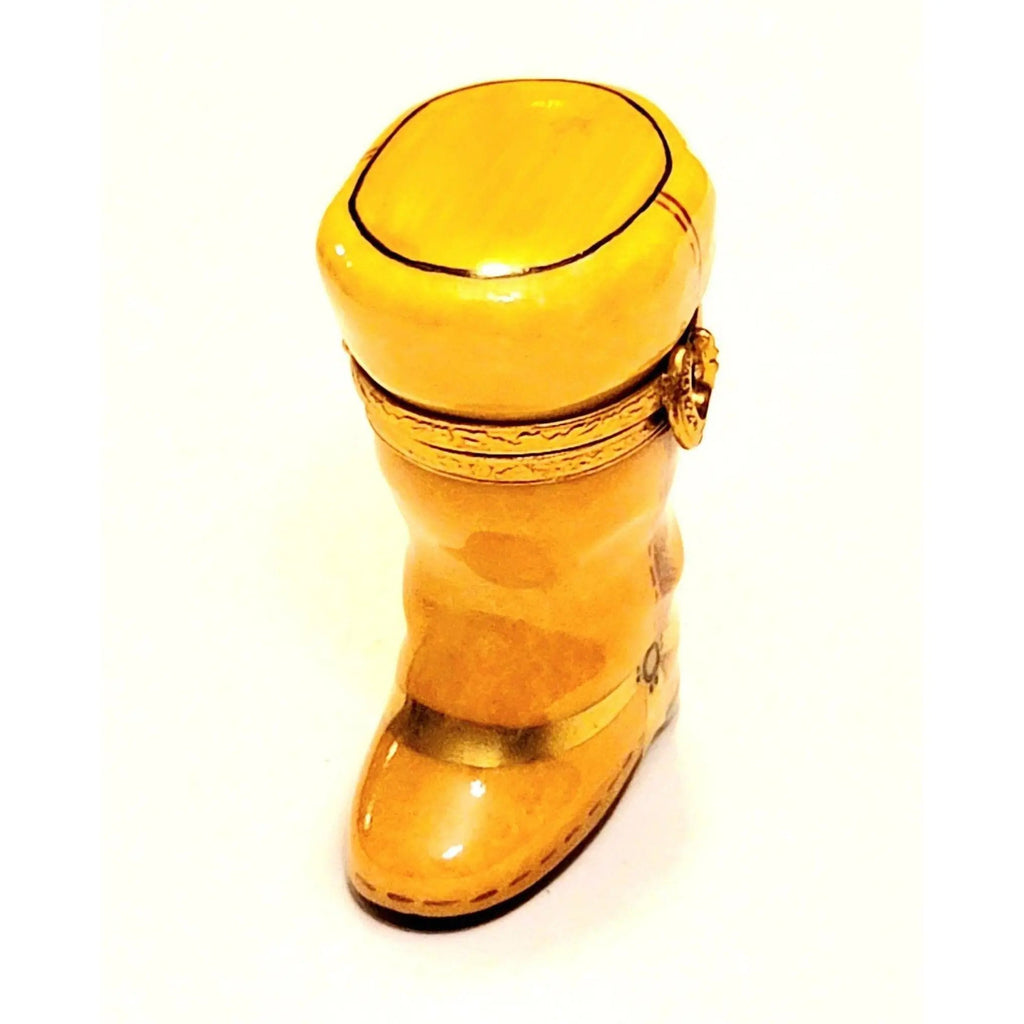 Yellow Cowboy Boot Limoges Porcelain Box - A Tribute to the Adventurous Cowboy Spirit