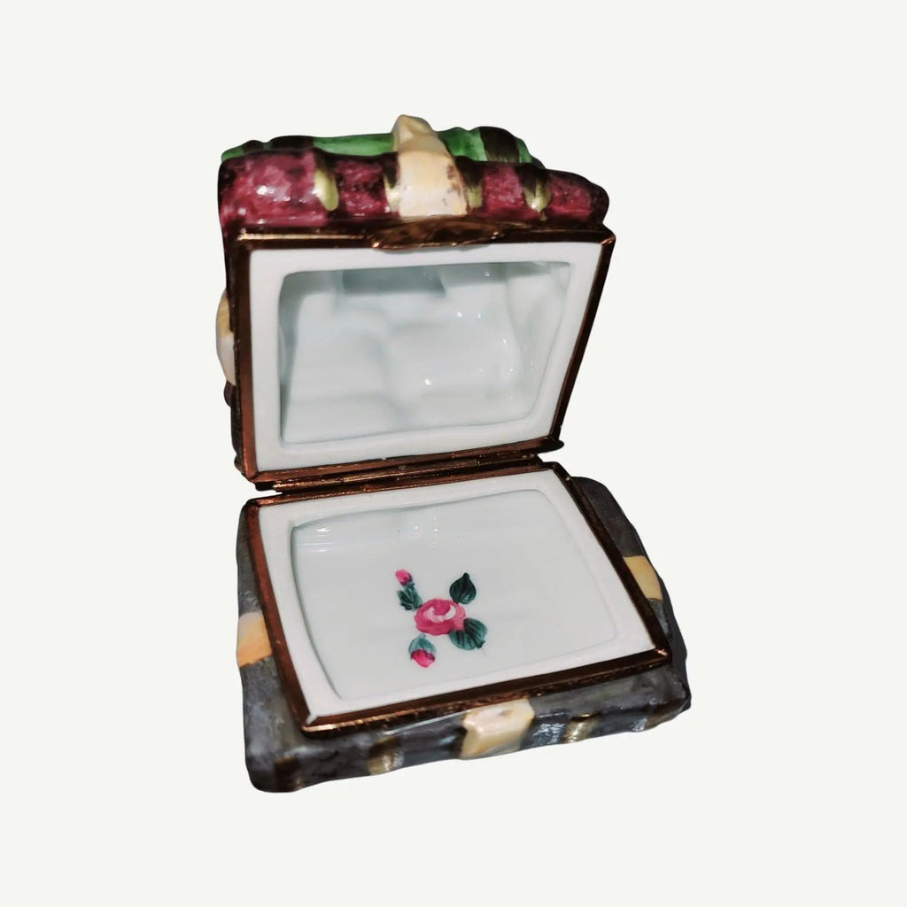 Indulge in the exquisite charm of our Rose Wrapped Book Limoges Box, a stunning tribute to artistry and craftsmanship from the legendary city of Limoges, France. This captivating piece features a beautifully hand-painted stack of books, elegantly adorned with a delicate rose, making it the perfect gift for book lovers and flower enthusiasts alike.