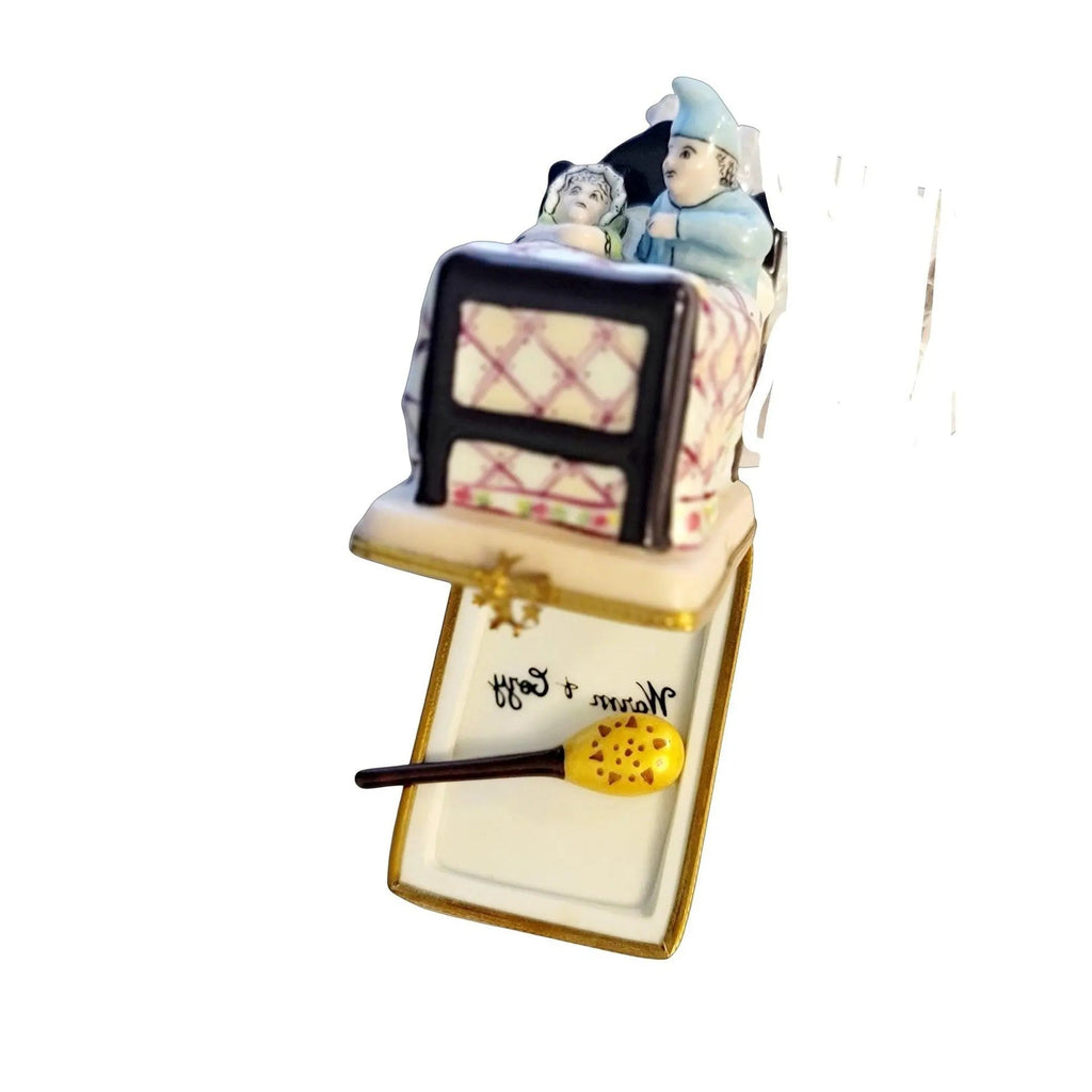 Immerse yourself in the charm of the Cozy Love in Limoges Trinket, a captivating piece that beautifully depicts an older couple in bed, designed to evoke feelings of warmth and coziness. Handcrafted in France, this exquisite Limoges box showcases meticulous attention to detail, making it a stunning addition to your home décor or a heartfelt gift.