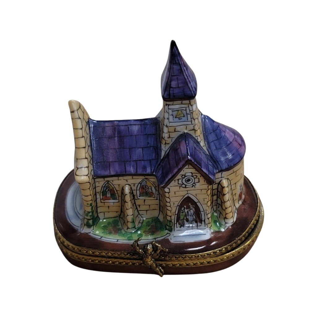Introducing the exquisite Purple Cathedral Church Limoges Box, a true masterpiece that radiates elegance and sophistication. This stunning porcelain figurine serves as a captivating centerpiece, perfect for collectors and art enthusiasts alike, making it an ideal gift for those who appreciate fine craftsmanship and religious artistry.