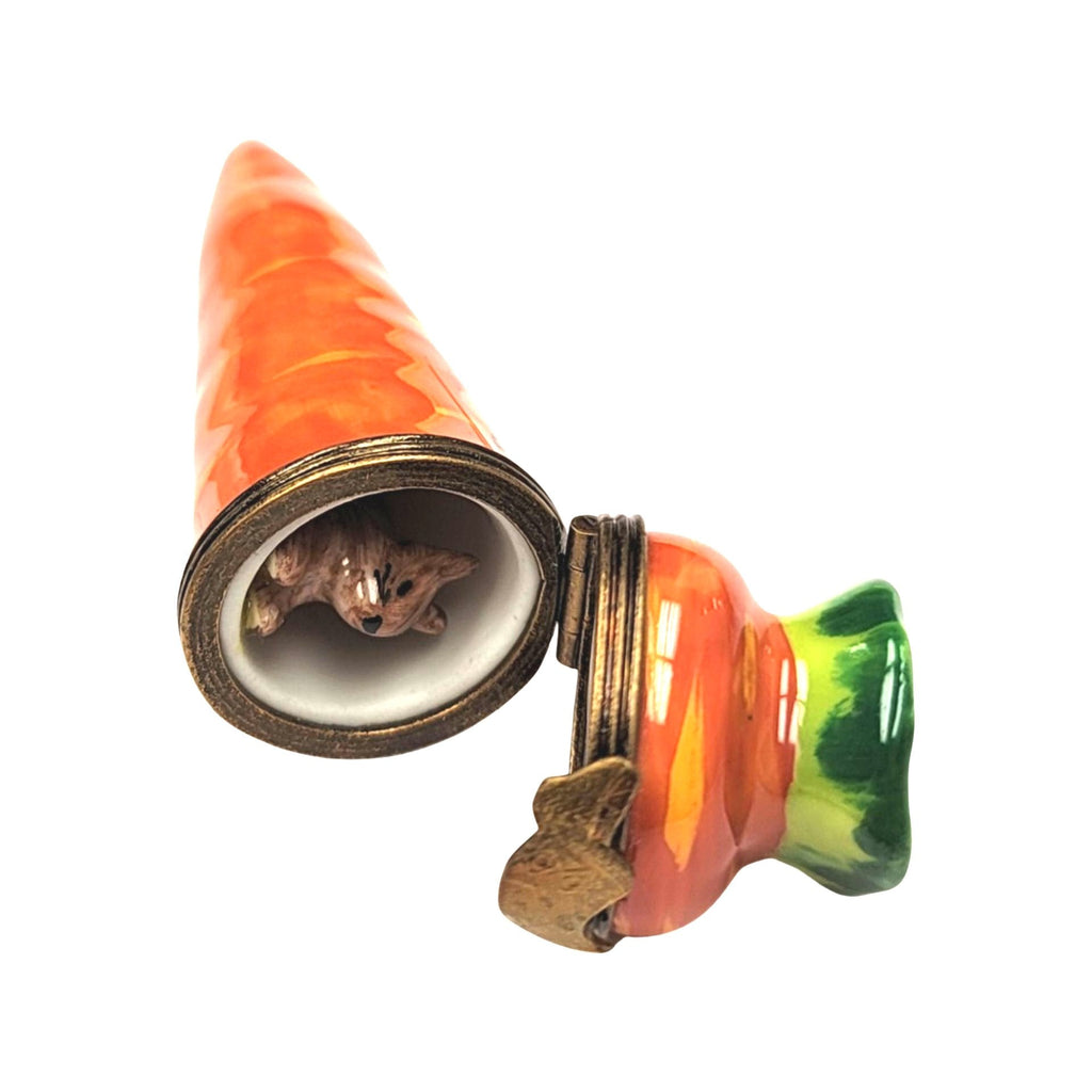 Exquisite Carrot Surprise with Rabbit Limoges Porcelain Box