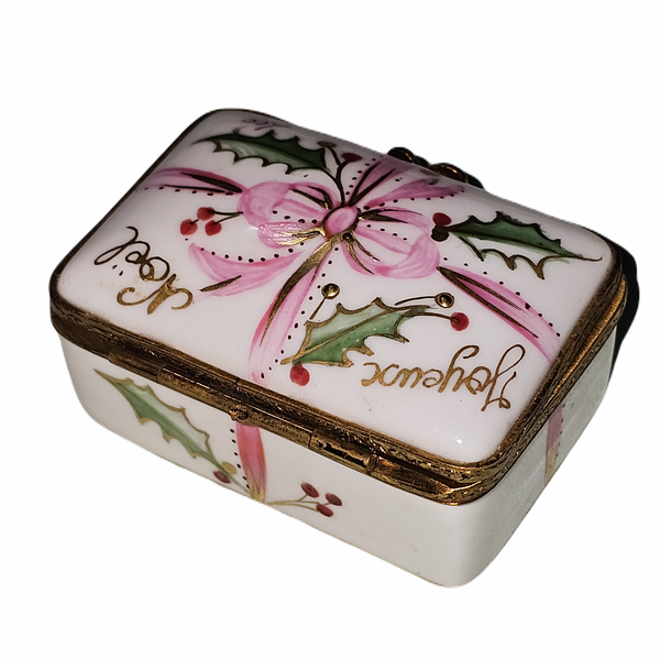 Enchanting Christmas Holly Bow Limoges Porcelain Box for Collectors
