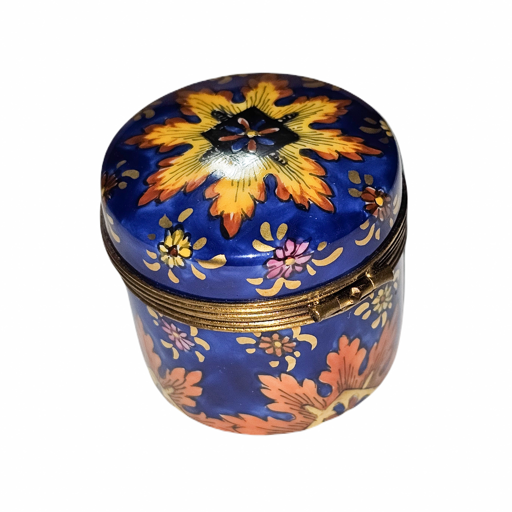 Enchanting Dark Blue Floral Limoges Box for Collectors