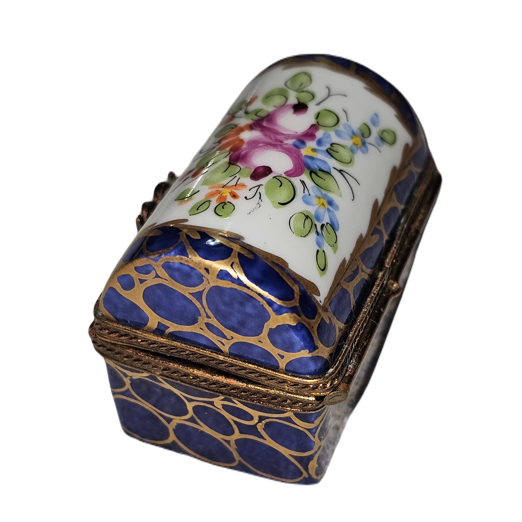 Dark Blue Floral Limoges Box for Elegant Gifting