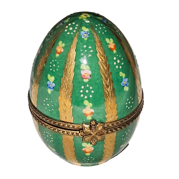 Elegant Green Floral Limoges Egg Box - A Timeless Gift