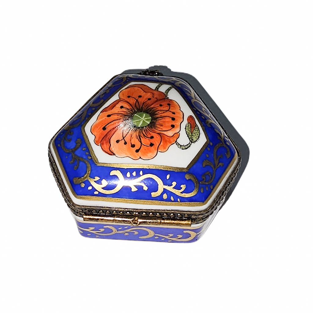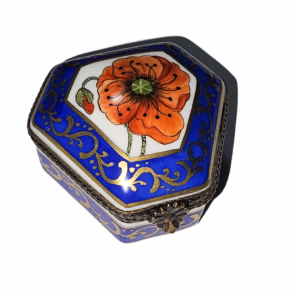 Transform your living space with the exquisite Hexa Blue Orange Flower Box, a stunning Limoges porcelain piece that beautifully combines elegance with artistic flair. This enchanting decorative item is perfect for enhancing your home decor while serving as a thoughtful gift for special occasions.