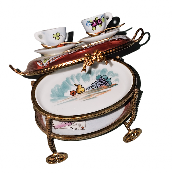 Discover the Maroon Elegance Tea Cart: A Timeless Limoges Porcelain Masterpiece