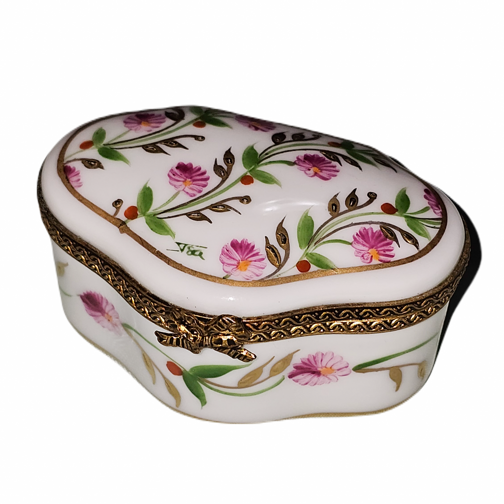 Introducing the exquisite Pink Floral Elegance Box, a perfect representation of artistic craftsmanship that embodies elegance and beauty. This stunning Limoges porcelain box is not just a decorative piece but also serves as a heartfelt gift, ideal for celebrating special moments in life.