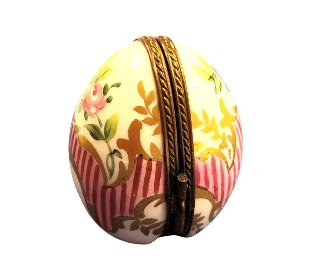 Pink Stripes Oval Picture Frame Porcelain Limoges egg French Trinket Box
