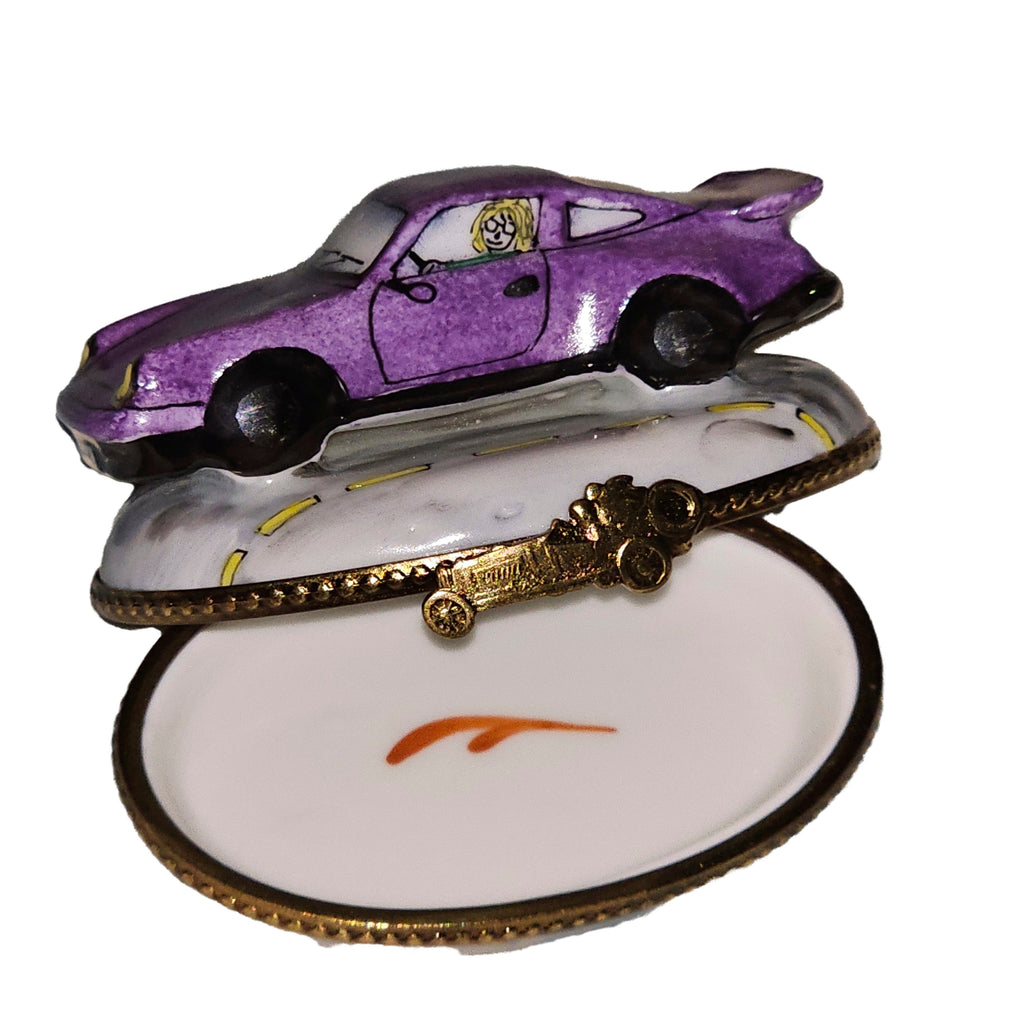Introducing the Purple Porsche Limoges Box Delight, a stunning masterpiece that beautifully captures the essence of luxury and passion for automotive design. This exquisite piece not only serves as a decorative item but also as a unique keepsake, making it the perfect gift for car enthusiasts and collectors alike.