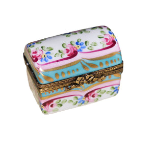 Embrace the charm of exquisite artistry with our Turquoise Pink Floral Treasure Box, a stunning Limoges porcelain masterpiece that adds a touch of sophistication to any space. This enchanting box serves as not only a decorative item but also as a perfect gift for cherished moments, celebrating special occasions like weddings, birthdays, or anniversaries.