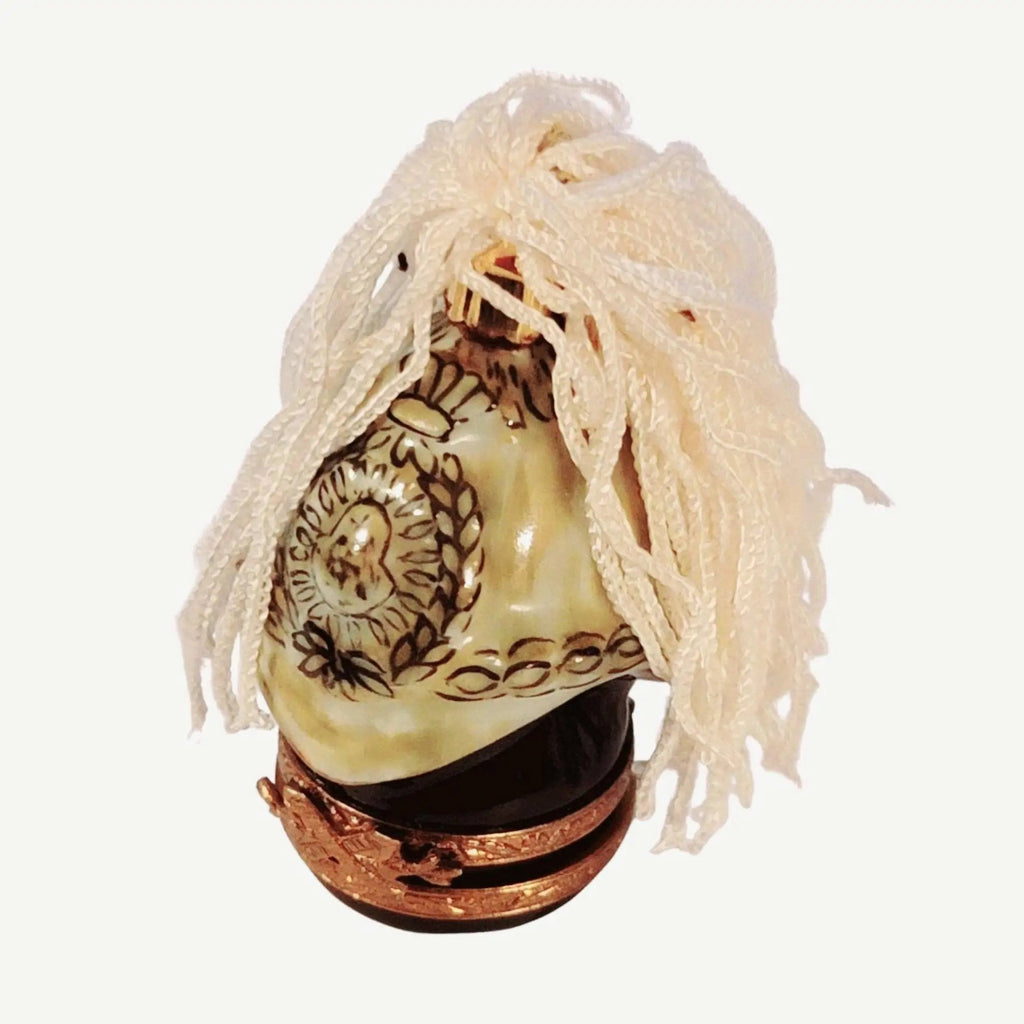 Step into a realm of historical elegance with our Elegant French Guard Helmet Box, a stunning representation of military sophistication that serves as a perfect gift for collectors and admirers of art alike. Crafted from premium French porcelain, this exquisite piece not only enhances your décor but also adds a touch of regal charm to any space.