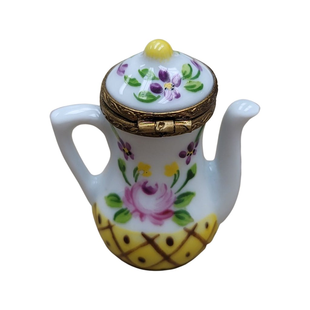 Elegant White Yellow Teapot Limoges Box for Home Decor